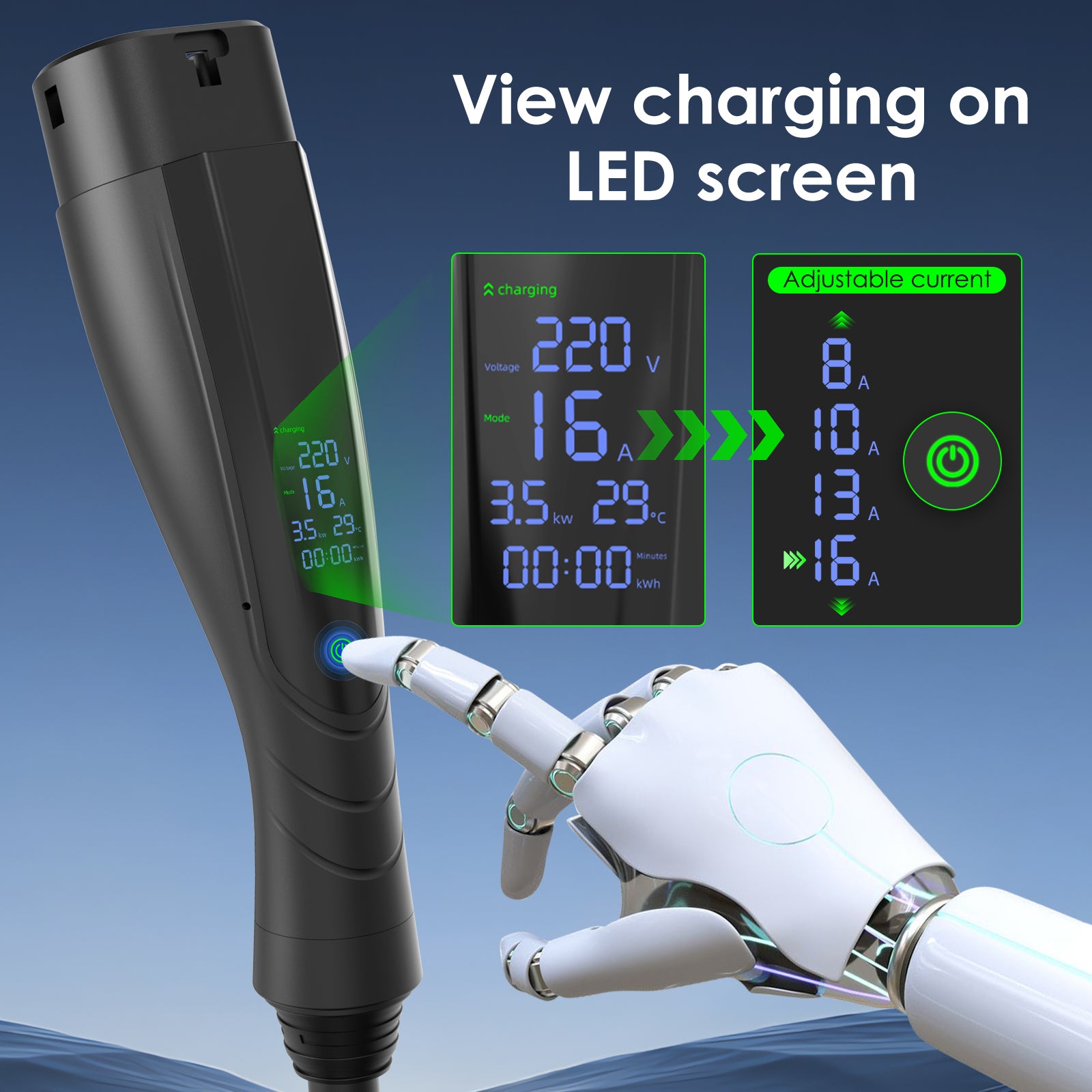 Stop guessing your charging status. The high-definition LED screen integrated into the handle provides real-time data. Track your voltage, current, power consumption, and total energy (kWh) in one glance. It even monitors the internal temperature to ensure everything is running cool and safe.