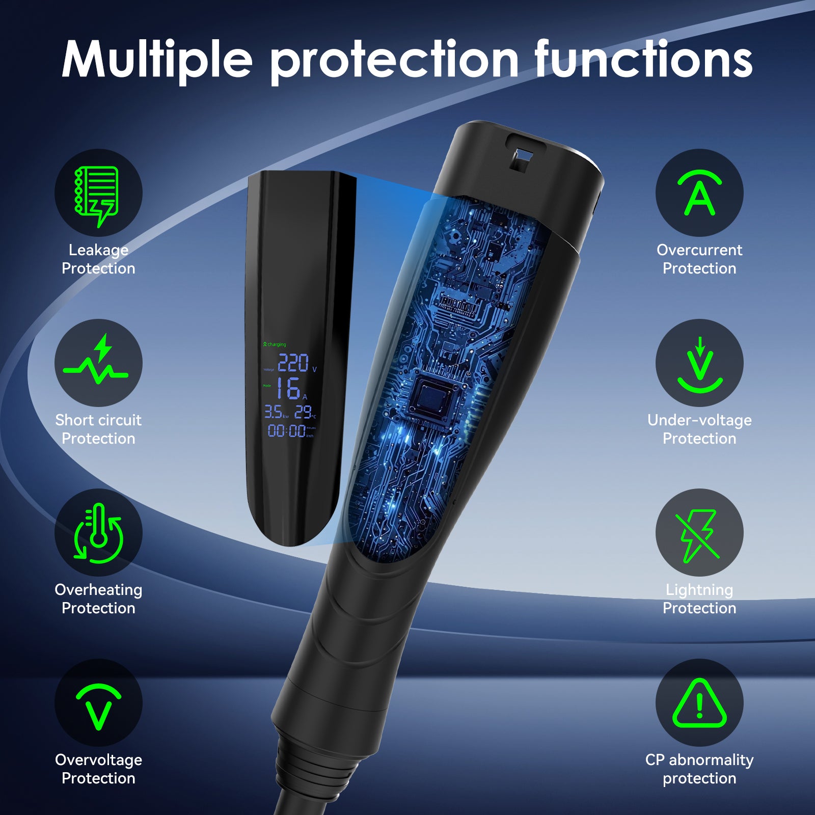 Our Integrated Single-Piece Design houses all the smart tech directly inside the Type 2 connector. It’s lighter, sleeker, and incredibly easy to handle—making it the perfect charging companion for everyone in the family, including women and seniors who prefer a more ergonomic, weightless experience.