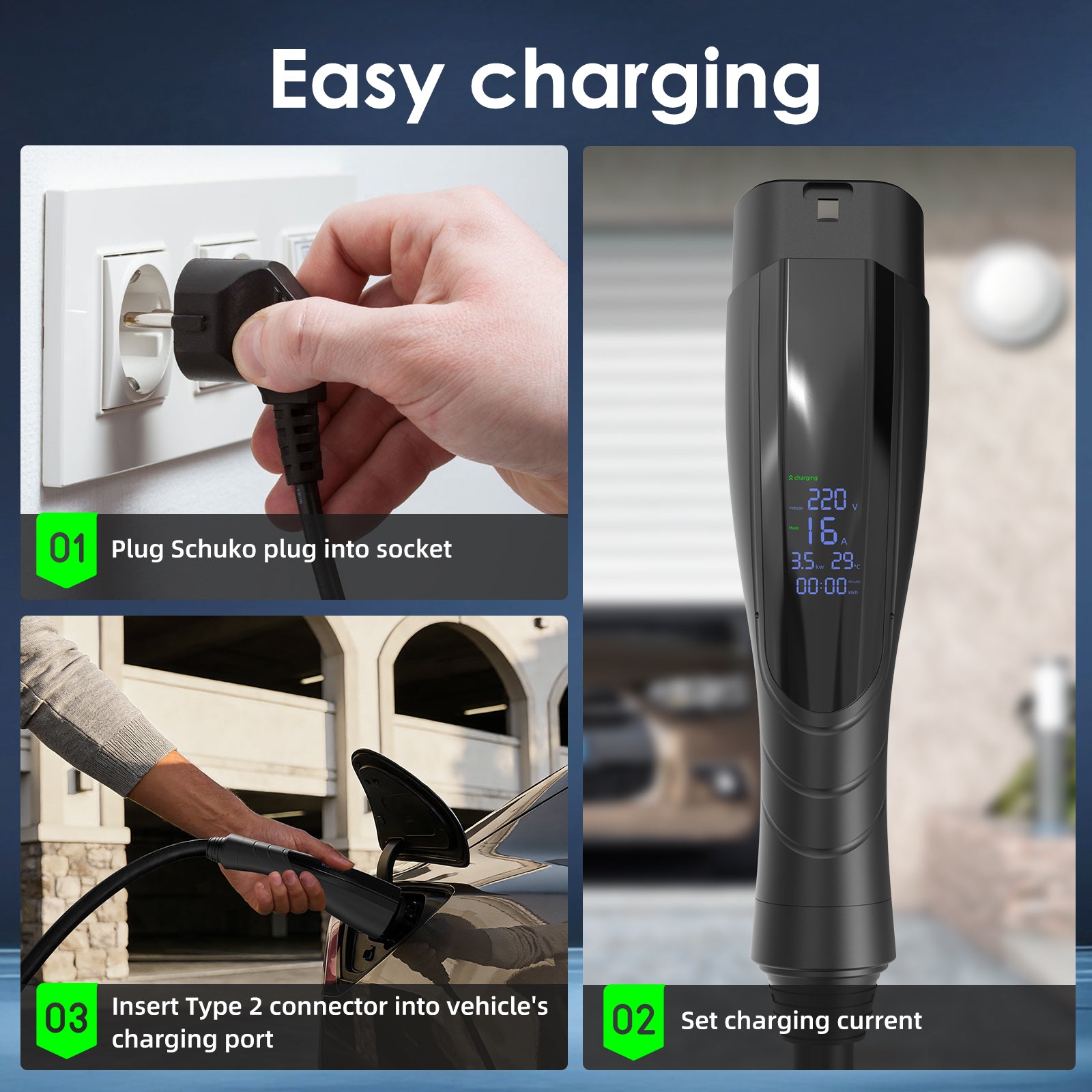 Discover the ultimate Type 2 portable EV charger designed for maximum portability and effortless use across the EU.
